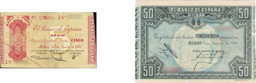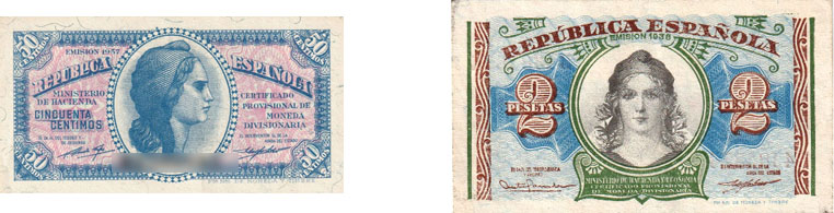 Ya a partir de 1931 hubo emisiones tanto del Banco de España (Madrid, Barcelona, Bilbao, Santander y Gijón) como del Ministerio de Hacienda en Madrid, de La Generalidad de Cataluña y del Consejo de Asturias y León. Veámoslas con algunos ejemplos: