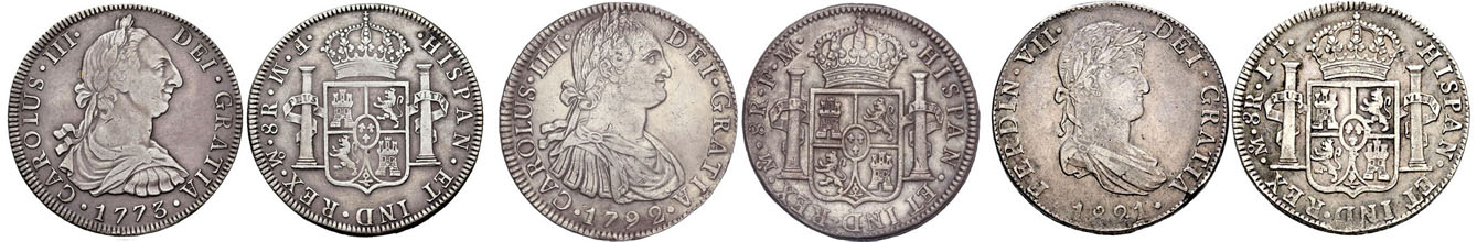 Se les denominó “spanish dollars” y sus columnas fueron el origen del símbolo del dólar norteamericano así como del peso hispanoamericano. Son consideradas como entre las más bellas monedas jamás producidas.